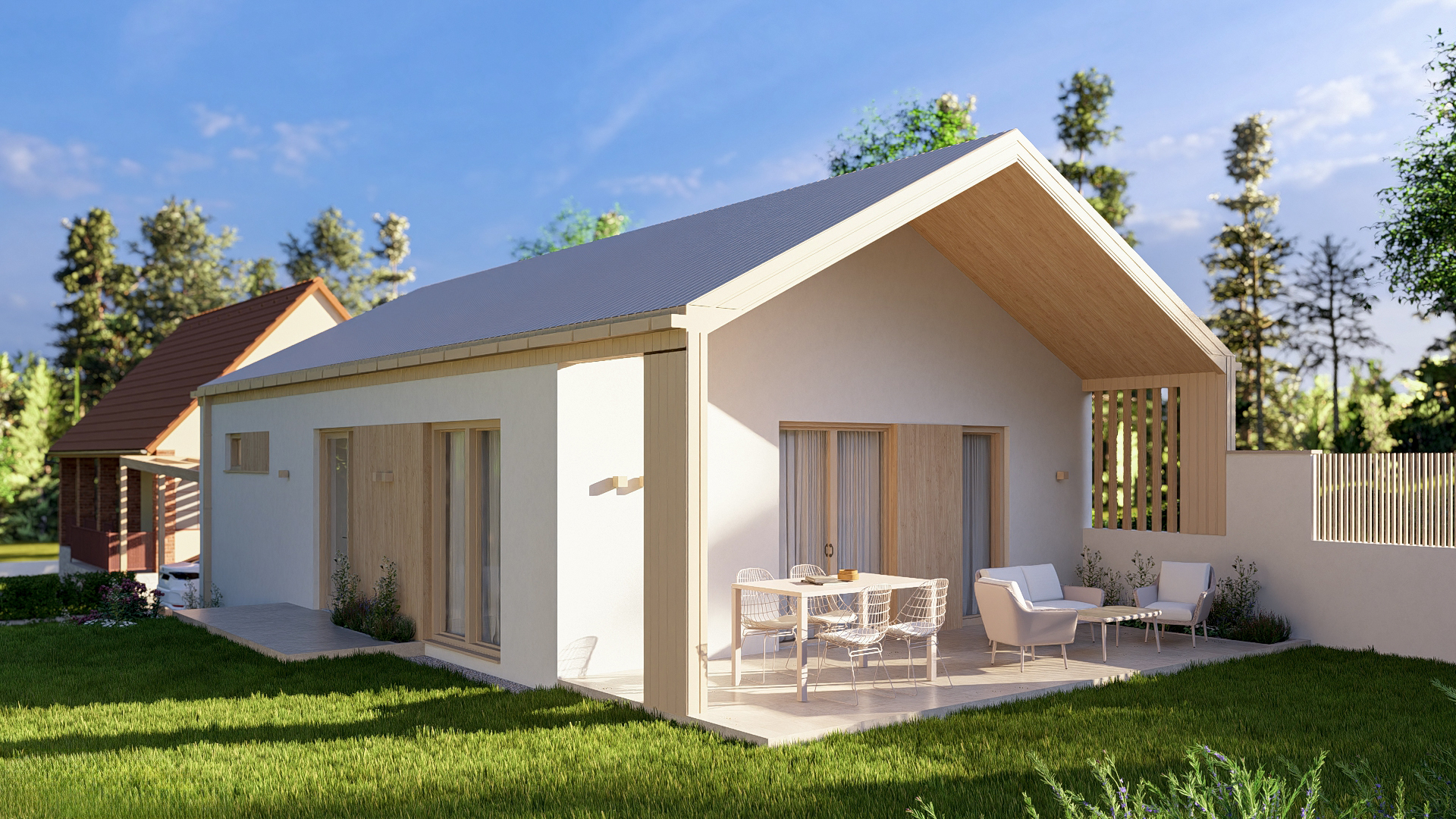 A Gödöllő 88 típusterv a modern élethez igazodó, okos térszervezéssel rendelkező otthon, amely tökéletes választás lehet pároknak vagy kisgyermekes családoknak. Letisztult formavilága és tágas mérete miatt kiválóan illeszkedik kertvárosi vagy vidéki környezetbe. A 88 m²-es otthon a praktikusságot ötvözi a stílusos kialakítással – minden négyzetmétere a kényelmet szolgálja. Az acélszerkezet gyors építést és kiemelkedő élettartamot biztosít, miközben energiahatékony megoldásaival hosszú távon is gazdaságos fenntartást kínál. A Gödöllő 88 típusterv valódi értéket képvisel – időtálló, élhető és szerethető otthon.